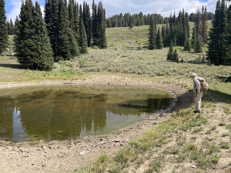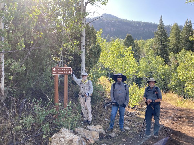 Home Little Bear Loop, 26 August, 2024 The Little Bear hike went well except for knee pain which was brought on by the steep downhill section of the Great Western Trail toward the end of the hike. The Little Bear Trail was good with no problems finding or following the route. The hike began on the West Hodges GWT (Great Western Trail), where it zig-zags up a southwesterly-facing slope for about a mile. This trail section was moved away from West Hodges Creek in 2020 to avoid problems caused by beaver activity in West Hodges Creek. Views from the ridge were spectacular - we could see Bear Lake, Peter Sinks, and high peaks of the Bear River Range (Logan Peak, Mount Elmer, Beirdineau Peak, Mount Naomi, Mount Gog, Mount Magog, "Pika Peak" and Doubletop Mountain). There were small sinkholes along the upper Little Bear creek drainage on the way to Rex Reservoir. This loop was longer than anticipated and challenging due to steep downhill, but could be done as Cache Hikers trip to Rex Reservoir and back, but that would eliminate some of the best views from the ridge. Trip Summary: