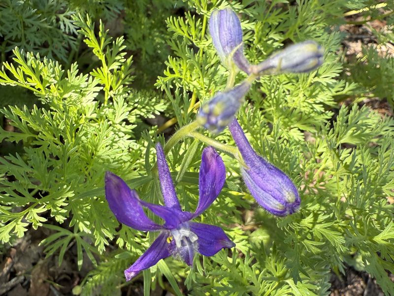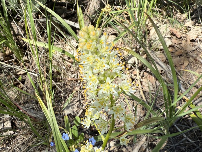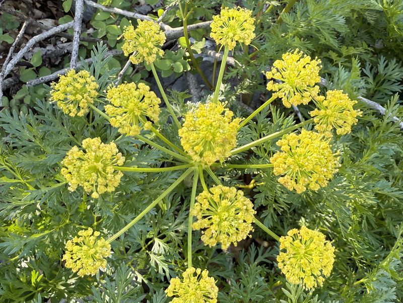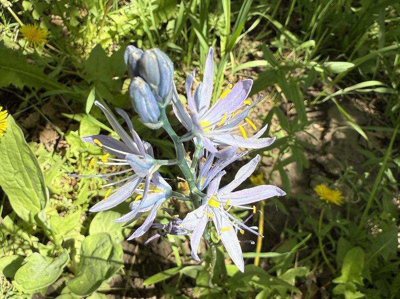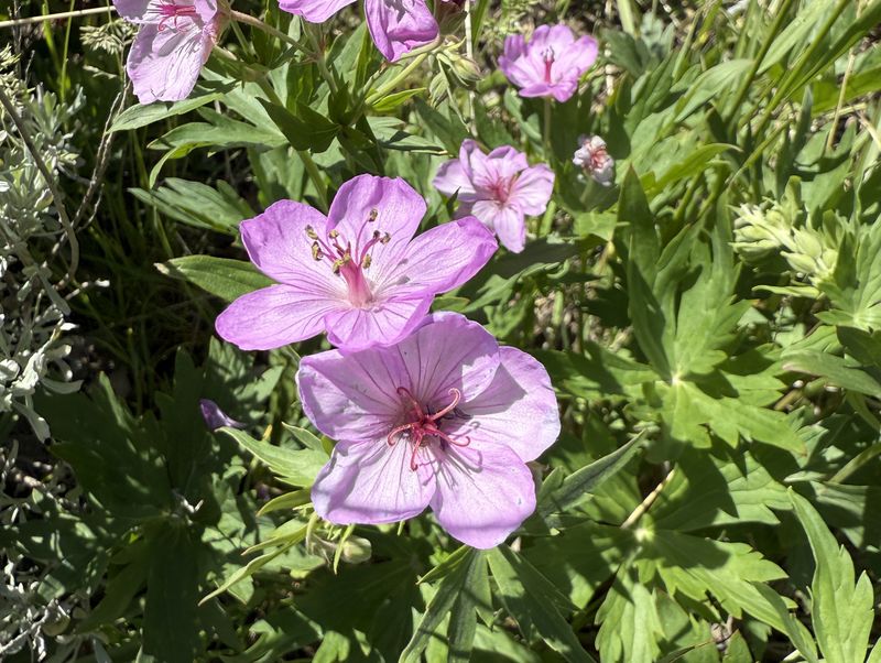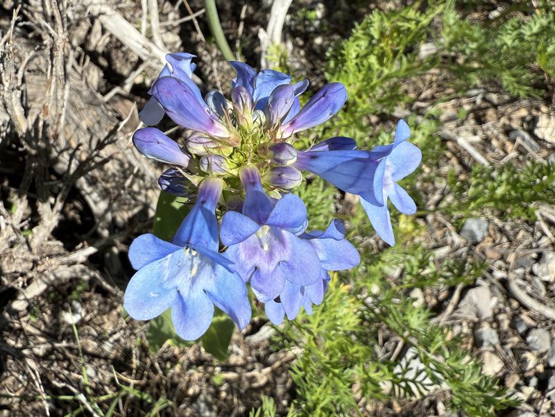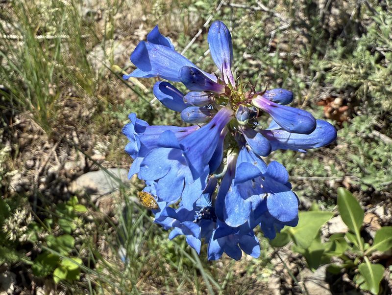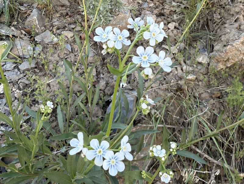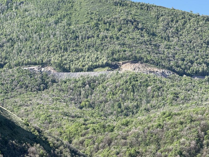 Home Old Sardine Road, 25 May, 2025 Something unusual must have been in the air on this fine Memorial Day weekend, as twenty-seven people and one dog turned out for this hike, a record number for any Cache Hikers outing. This was a good hike to accommodate our numbers, since we walked on a road the whole way and there were no junctions where someone could be led astray. The weather was quite benign as well, starting out in the 60s and reaching the low 70s at the end, with only a few decorative clouds over the mountains. We enjoyed the great views, spring green hillsides, and scattered wildflowers. We walked to a fence across the road where we looked down on the noisy Highway 89/91 below, then turned back and found a shady spot for a snack break. Some hikers found fossils in the limestone outcroppings along the last half mile or so of road. On the return trip eight hikers took an alternative route where they encountered even more wildflowers. David shared a YouTube link to a video of our hike. Trip Summary: