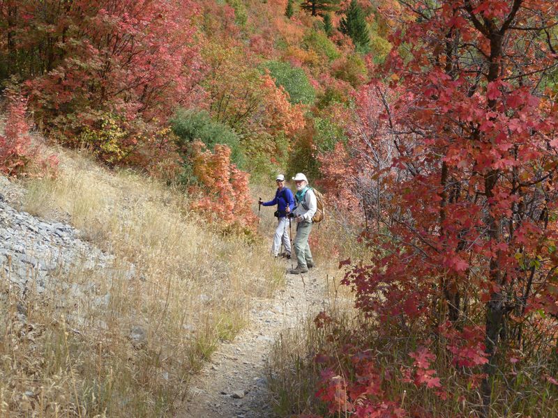 Home After meeting at Smith's Marketplace in Logan, we carpooled up to the trailhead in Smithfield Canyon and started hiking about 8:50. Within a few minutes we encountered the remains of a turkey on the trail after an unknown predator had eaten all but the feathers and feet. Farther up the trail we came upon the remains of a grouse, another meal for some predator. The fall colors were out in splendor, especially along the first couple of miles before the higher elevations of the Mt. Naomi Wilderness. We encountered a section of newly renovated trail, with extensive tread work and brushing. Later we learned that the Utah Conservation Corp had done the work. Unfortunately, there is a lot more of this trail that needs major work. Maybe next year? Higher up the trail, we found evidence of a Wilderness violation - logs that had been cut with a chainsaw. After a leisurely lunch overlooking Cottonwood Canyon, we headed back down the trail, enjoying great fall colors, pleasant weather and a section of newly renovated trail. Trip Summary: