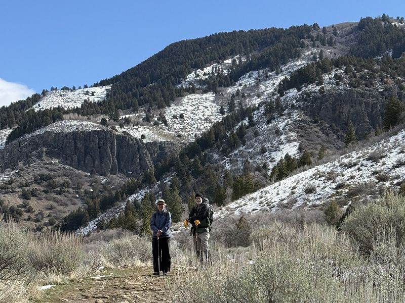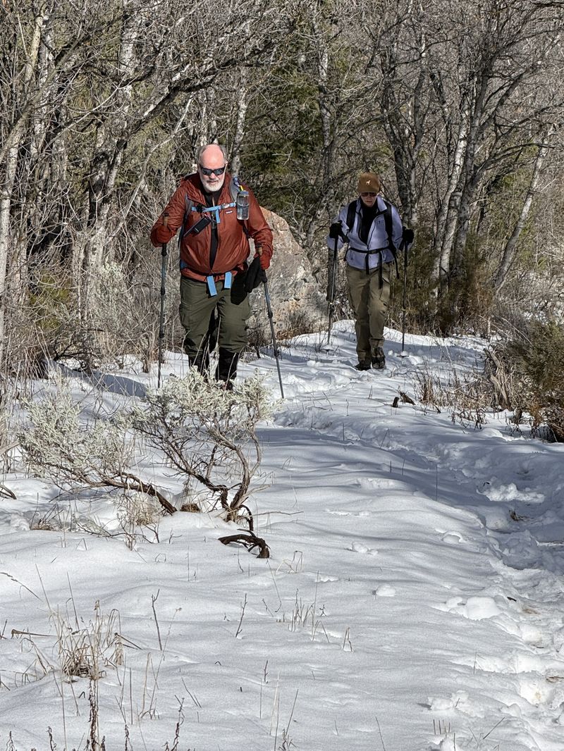 dry at hike beginning and end, with mud and snow in
