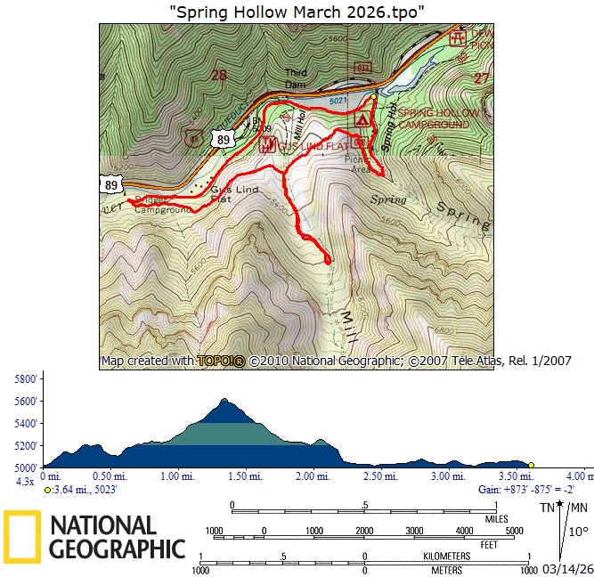 hiking about 10:30, lunch at Gus Lind Flat 12:20 -
